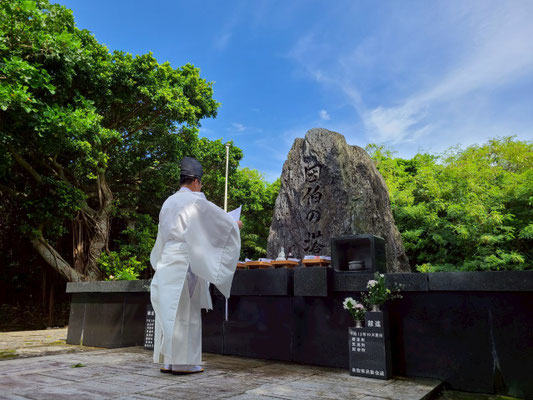 令和7年7月29日、沖縄本島南部の因伯の塔にて慰霊祭を斎行しました。